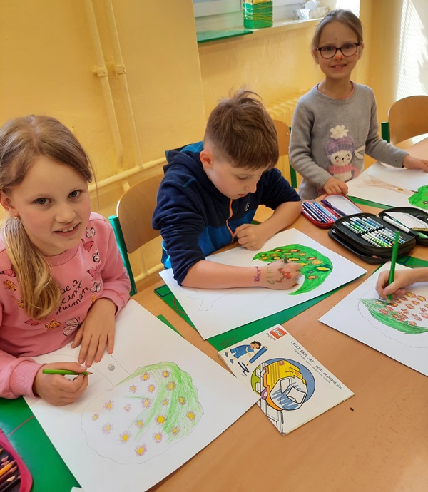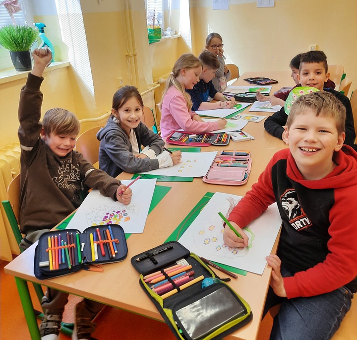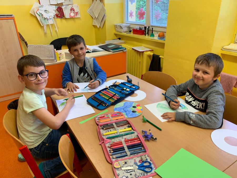 K příležitosti Dne Země jsme ve školní družině kreslili housenky, šneky a berušky v přírodě, vystřihovali veselé malé zeměkoule a rozkvetlé stromy. Žáci se hodně snažili, práce je zaujala a bavila.